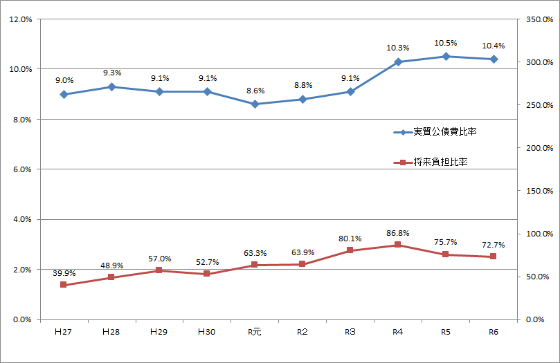 (4)将来負担比率 | 72.7% | 75.7% | 350.0% |