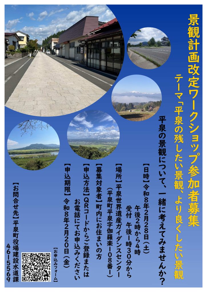町では景観計画改定に向け、ワークショップを開催します。景観やまちづくりにご興味のある方のご参加お待ちしております。