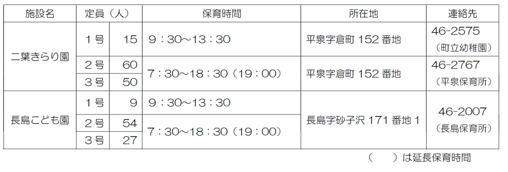 ※1号認定の方は、平泉幼稚園または長島保育所まで提出してください。