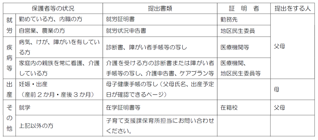平泉保育所、長島保育所、子育て支援課のいずれかに提出してください。